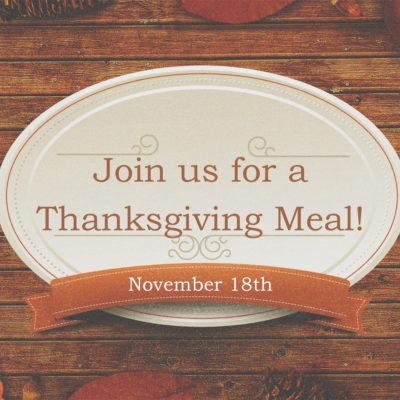 Thanksgiving Meal November 18, 2018 12:00 pm Join us for a Thanksgiving Meal following Morning Service. The church will provide the meat and tea. Bring your favorite side and/or dessert and let’s break bread together!